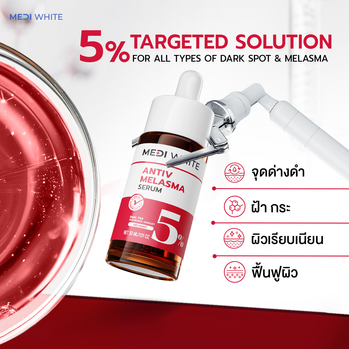 เมดิ ไวท์ เอนทีฟ เมลาสม่า เซรั่มและดูแลปัญหาฝ้า ตั้งแต่ต้นเหตุ จนถึงการป้องกันการเกิดซ้ำ